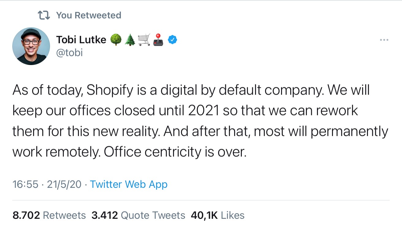Como un claro ejemplo del movimiento WFH, me ha llamado la atención la confesión pública de David Bonilla en su Bonilista del 6 de Diciembre, “El Viaje” en donde siendo un emprendedor de éxito y de referencia para muchos, decide mudarse con su familia desde Madrid a La Coruña, cuando históricamente el camino inverso había sido el tradicional, durante décadas o incluso siglos.. Por cierto, te animo a suscribirte a la Bonilista de David, si eres inquieto, emprendedor, o inconformista. No le conozco personalmente, pero tenemos amigos comunes que le avalan, además de su trabajo, como tipo de referencia.